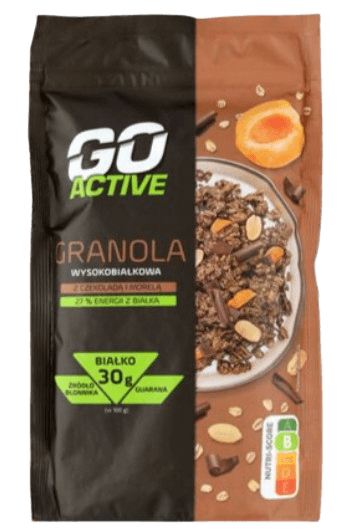 GO ACTIVE GRANOLA WYSOKOBIAŁKOWA Z CZEKOLADĄ I MORELĄ
