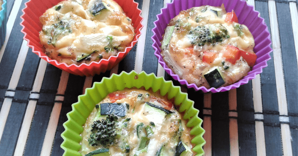 Jajka rozbić i rozbełtać z mlekiem. Warzywa pokroić w kostkę. Ser zetrzeć na tarce. Szczypiorek posiekać. Wszystkie składniki wymieszać razem i doprawić do smaku odrobiną soli i pieprzem. Masę jajeczno-warzywną przelać do silikonowych foremek na muffinki. Piec około 20 minut w piekarniku. Podawać na ciepło.