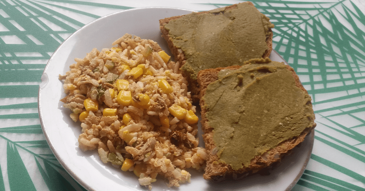 Odpowiednio wcześniej ugotować, brązowy ryż, warzywa pokroić w kostkę, dodać tuńczyka, dosypać płatki lniane i całość wymieszać z przygotowanym pikantnym sosem.